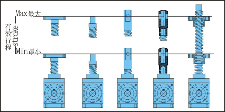 絲杆升降機行程即絲杆(gǎn)可伸縮長度範(fàn)圍,絲杆總長包含行程外還包括(kuò)固定絲杆頭部尺寸、箱體內部分(fèn)和安全距離。