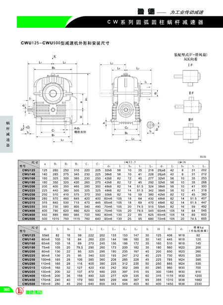 CWU圓(yuán)弧圓柱(zhù)蝸杆減速機(jī)外形參(cān)數(shù)