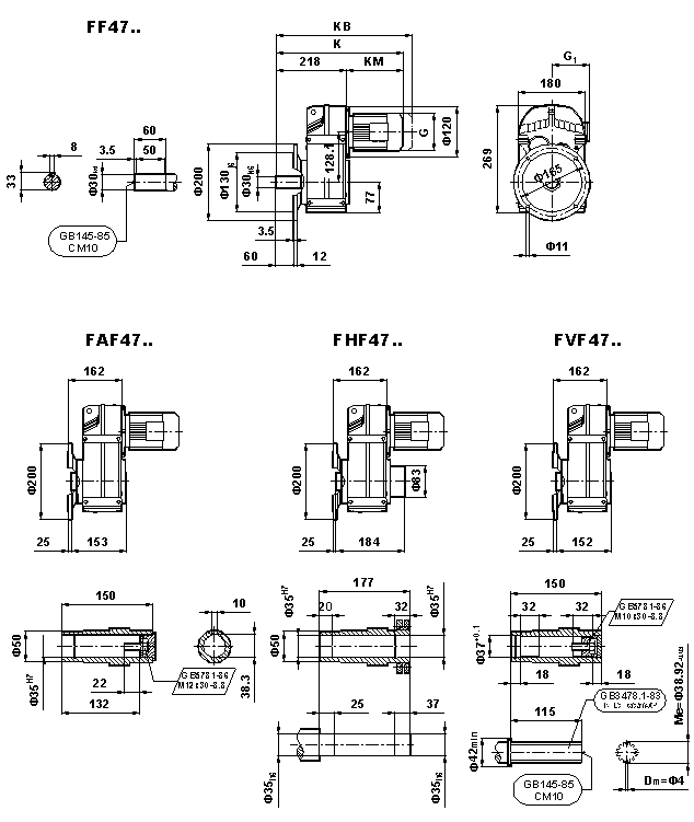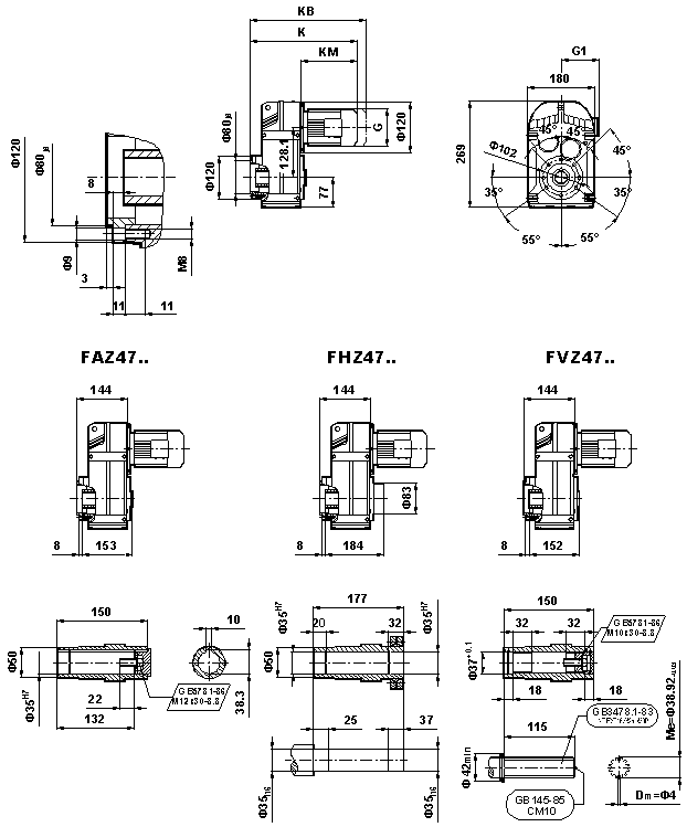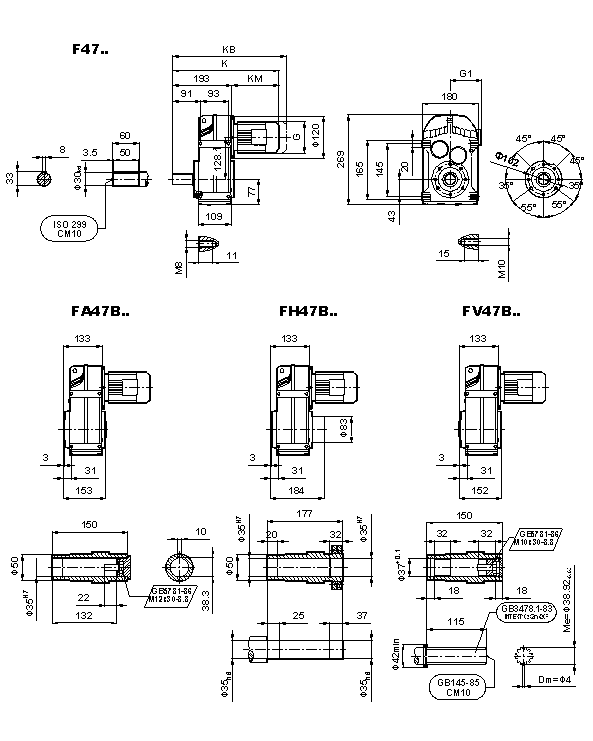 外形安裝尺寸(cùn)(F47、FA47B、FH47B、FV47B、FF47、FAF47B、FHF47B、FVF47B、F..47/G、FA47、FH47、FV47、FAZ47、FHZ47、HVZ47)