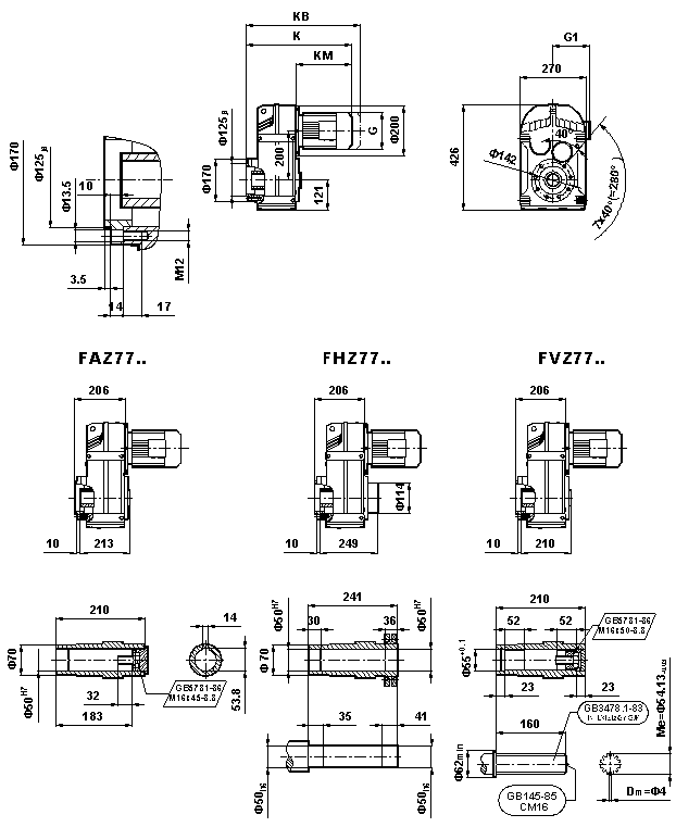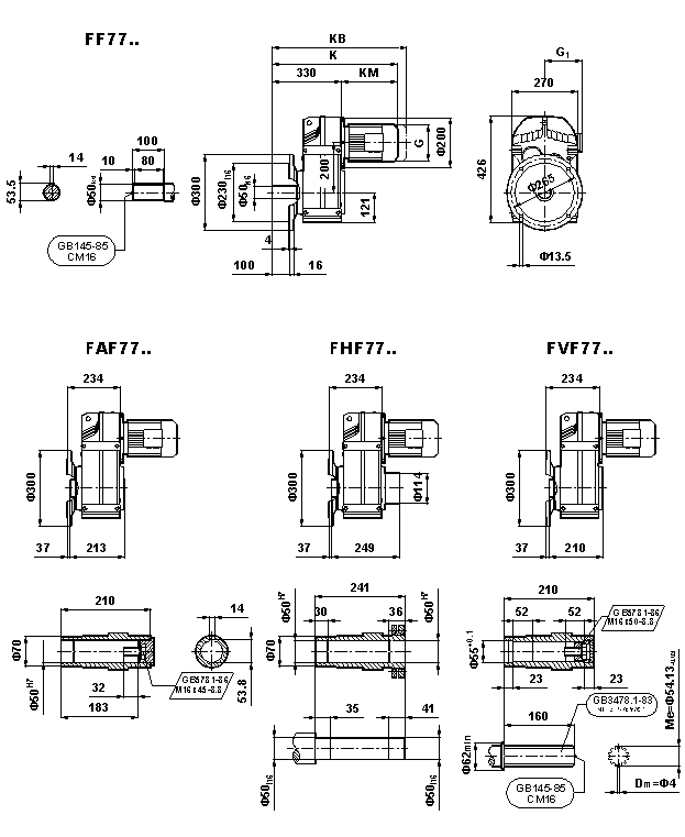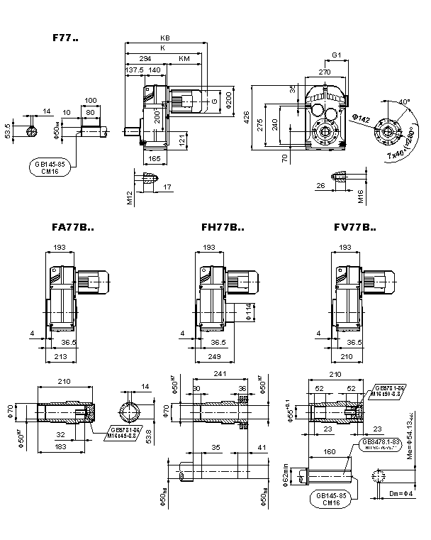 F係列減速機,F係列斜齒輪減速機,F係列傘輪減速機安裝尺寸F係列減速電機;外形安裝尺寸(F77、FA77B、FH77B、FV77B、FF77、FAF77B、FHF77B、FVF77B、F..77/G、FA77、FH77、FV77、FAZ77、FHZ77、HVZ77)
