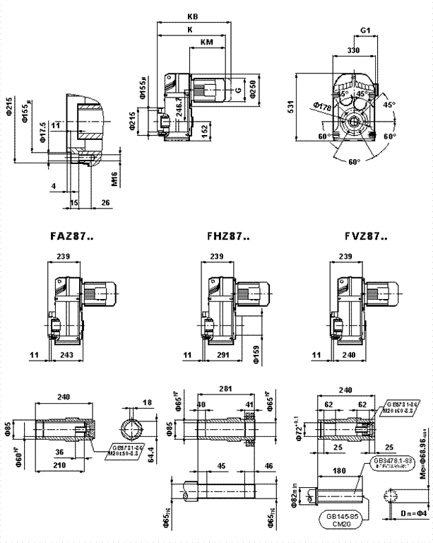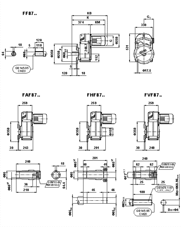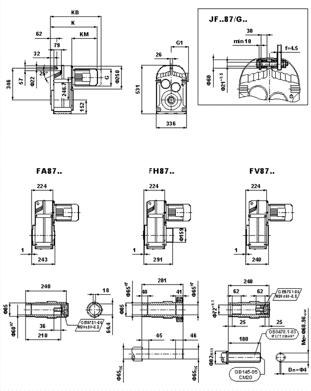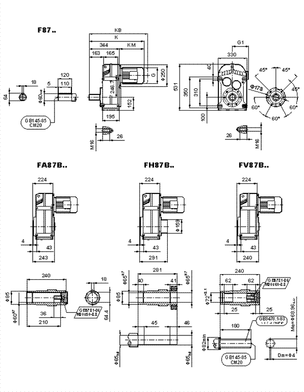 F係列減速機,F係列斜齒輪減速機(jī),F係列傘輪減速機;外形安(ān)裝尺寸(F87、FA87B、FH87B、FV87B、FF87、FAF87B、FHF87B、FVF87B、F..87/G、FA87、FH87、FV87、FAZ87、FHZ87、HVZ87)
