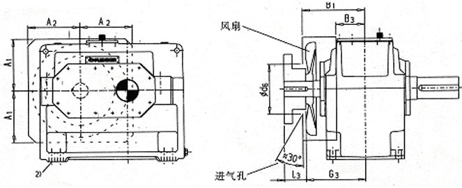H工業齒輪箱外形圖,B工業齒輪箱外形圖,HB齒輪箱臥式外形圖