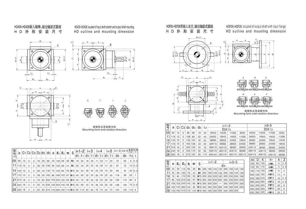 4、HD效率換(huàn)向器共(gòng)有(yǒu)七種規格(gé),選型範圍大,輸出軸形式多(duō)樣,可滿足多種場合的需要。