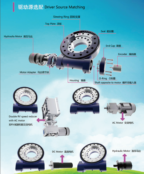 回轉減速機(jī)及開式齒輪或(huò)銷(xiāo)輪組成(chéng)。為了在事故停電時仍能旋轉,還設備了備用電源或其他動(dòng)力係統。采用直流電機驅動時,停電時可(kě)用蓄電池供電。采用交流電機供電時,停電時可(kě)用液壓或氣(qì)動馬達驅動。大(dà)型(xíng)回(huí)轉台多采(cǎi)用雙電機驅動,當一台電機發生(shēng)故障時,另一台電機能(néng)在允許的_負荷狀態下正常運轉。