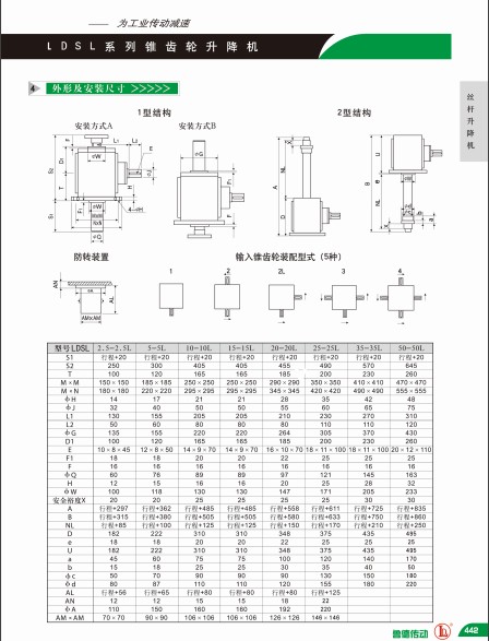 LDSL錐齒輪絲杆升降機承載能力(lì)2.5T~50T,與蝸輪絲杆升降機(jī)相比較具(jù)有_的使用效率和使用壽命,容易調整減速比,能(néng)按_程序準確(què)的控製調整提升或推進的高度。功能多,可靠性高,安裝方便,使用靈活,多種不(bú)同的結構型式可選擇(zé),提升高度可根據需要定製,具有自鎖功能(néng)。