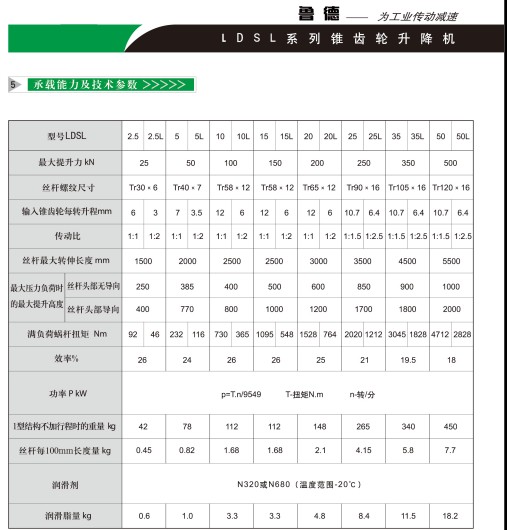 LDSL錐齒輪絲杆升降機技術參(cān)數