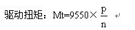 式中:Mt為驅動扭矩,P為驅動功(gōng)率,n為轉速。
