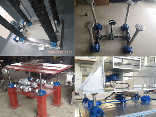 螺旋蝸輪絲杆升降機平台可以多種組合使用,常見兩(liǎng)台、四(sì)台、八台組合等。根據使用工況不(bú)同,絲杆升降機平台的組合(hé)型(xíng)式可選擇一(yī)字型、T型、U型、H型等。蝸輪絲杆升降機平台將電機、減速機、轉向器、蝸輪蝸杆升降機(jī)通過聯軸器、連(lián)杆等巧妙地組(zǔ)合在一起,能夠(gòu)達到多台穩(wěn)定(dìng)、同步、往(wǎng)複(fù)升降的要求,也可實現翻轉運動。