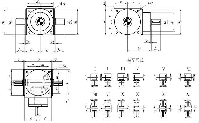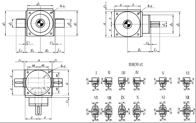 注:d2可作為(wéi)輸入端,此時,SPS型轉向箱在(zài)許用速度範圍內可作換向傳動