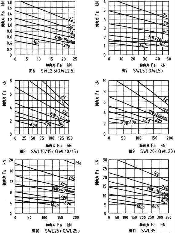 SWL升降機螺杆(gǎn)許用側向力Fs 和軸(zhóu)向(xiàng)力Fa與行(háng)程的關係(xì)