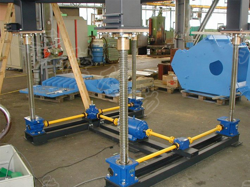 絲杆升降機應用場合廣泛,多種裝配型式(shì)安裝(zhuāng)方式選型方便,可單台(tái)實現頂升、推拉、翻轉等功能,也可多(duō)台組合實現(xiàn)同時升降、同一方向旋轉的工作平台,載重量有0.5噸(dūn)到幾百(bǎi)噸可選,升降高(gāo)度可根據用戶的使(shǐ)用方便加工定做。加工材(cái)料選用國標9-4銅蝸杆材質(zhì)為40Cr,絲杆一般采用45#鋼,對於一些潮濕具有(yǒu)腐蝕的(de)特殊環境也可以采用不鏽鋼材質加工。