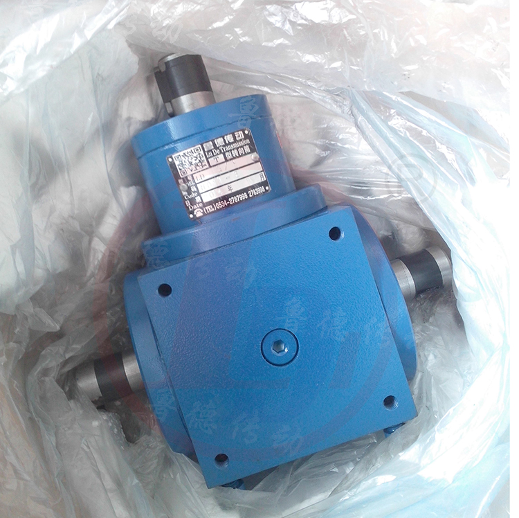 錐齒輪轉向箱箱體形狀為正六麵體,能(néng)適應不(bú)同方位的安裝;