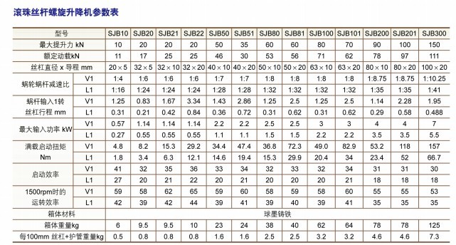 滾珠絲杆升降機目前我公司可(kě)提供兩個係列的產品供客戶選型即:JWB係列與SJB係列兩種型號。兩種(zhǒng)係(xì)列產品各有特點,SJB係列采用方形球磨鑄鐵殼(ké)體,相對JWB係列來說安裝更(gèng)為方便,安裝空間要求相對較小,多種速比可選,速度(dù)更快(kuài),效率_。