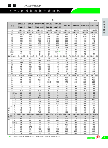 SWL係(xì)列蝸輪螺杆升降機提升高度可根據用戶要做製造,承載能力為2.5T~120T,_提(tí)升速度(dù)為2.7m/min,_輸入轉速1500r/min,工作環境溫(wēn)度為-20°C~100°C。廣泛應用於冶金、石化、機械(xiè)、建築、水利(lì)、醫(yī)療、文化、衛(wèi)生等各個領域。